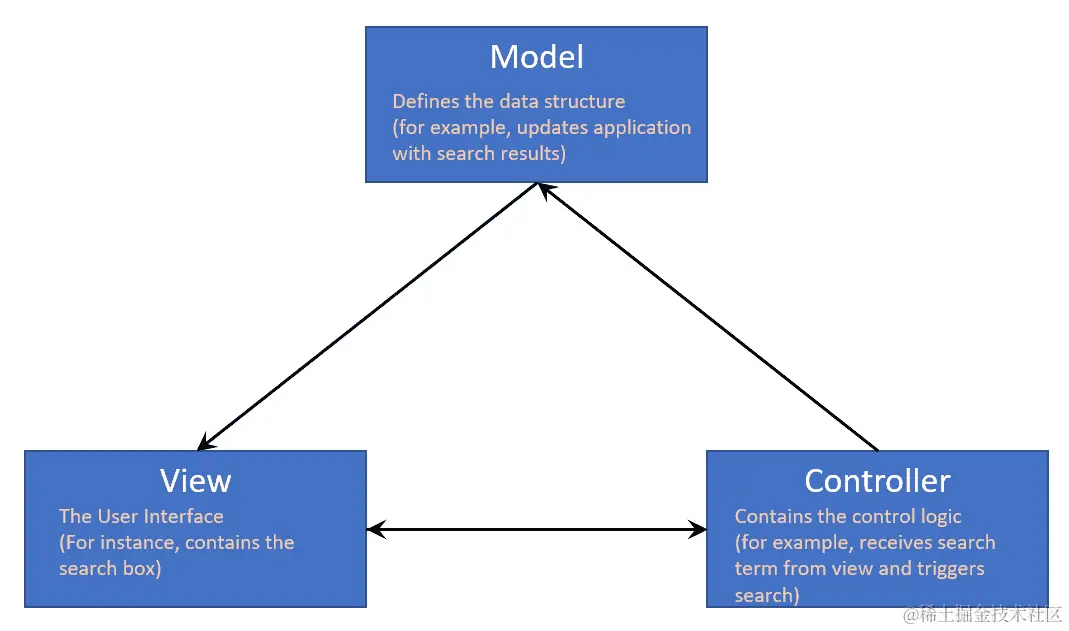 以下图表显示了 MVC 模式中的交互: