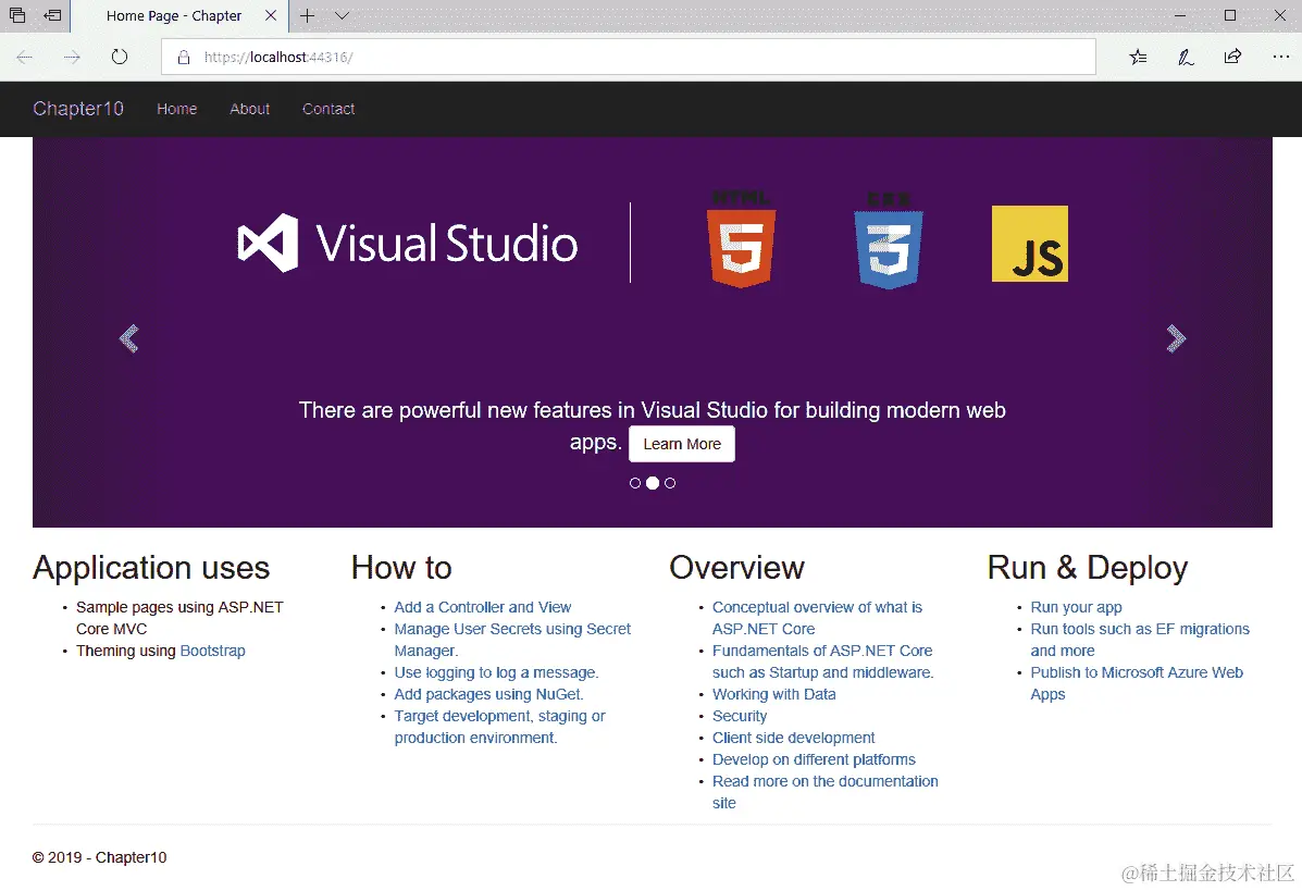 本章需要.NET Core Framework 版本 2.1 或更高版本。安装这个框架的最简单方法是下载并安装 Visual Studio;微软提供了一个功能齐全的社区版,你可以在visualstudio.microsoft.com/downloads/获取。