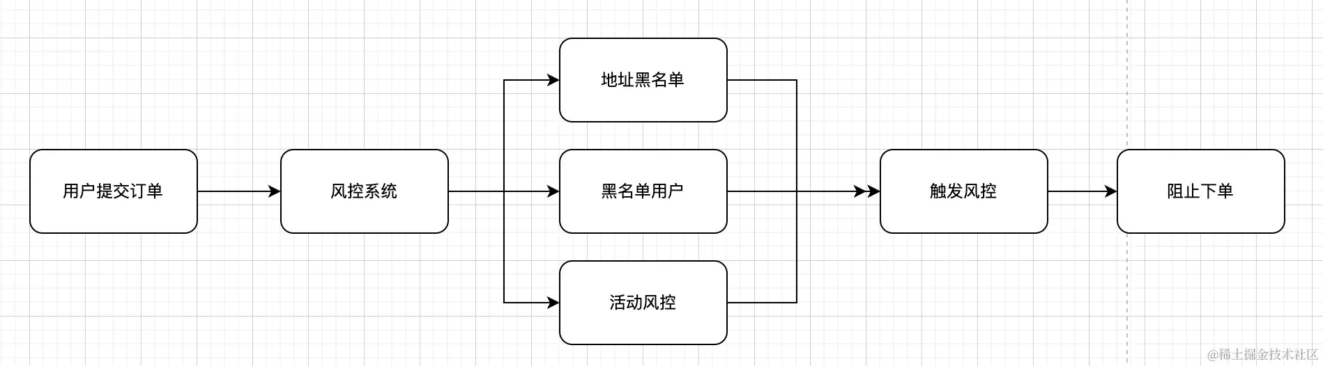 首先系统本身下单是有风控的,类似如下流程。用户下单的时候我们会去比对地址黑名单,用户黑名单,活动风控(一张新人券只能使用一次)等等其他的风控规则。