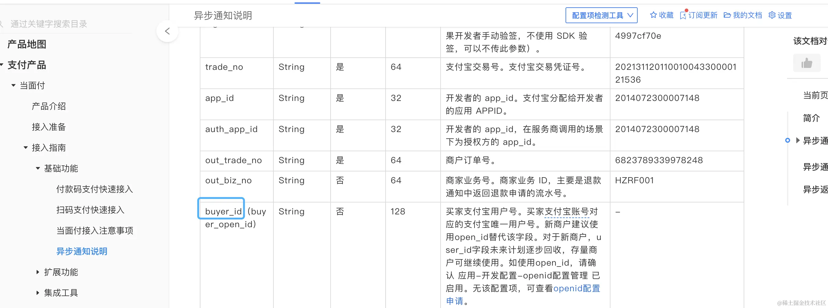 - 我们拉取这些订单支付信息,发现这批订单都是通过支付宝支付的。用户用支付宝支付完成后,支付宝会通知我们的服务,通知里面有个buyer_id字段。如下图