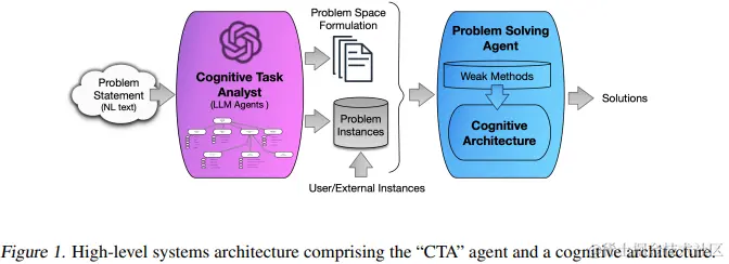 论文提出了一种利用大语言模型(LLMs)将自然语言描述的问题类自动转换为半形式化规范的方法,该规范可被现有的推理和学习系统用于求解对应问题类的实例。论文的核心是设计实现了一个LLM驱动的认知任务分析代理(Cognitive Task Analyst, CTA Agent)。