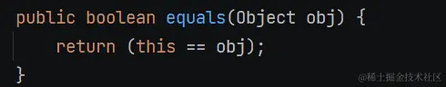 这是 object 中 equals 的代码, Object 直接比较对象的引用是否相等。