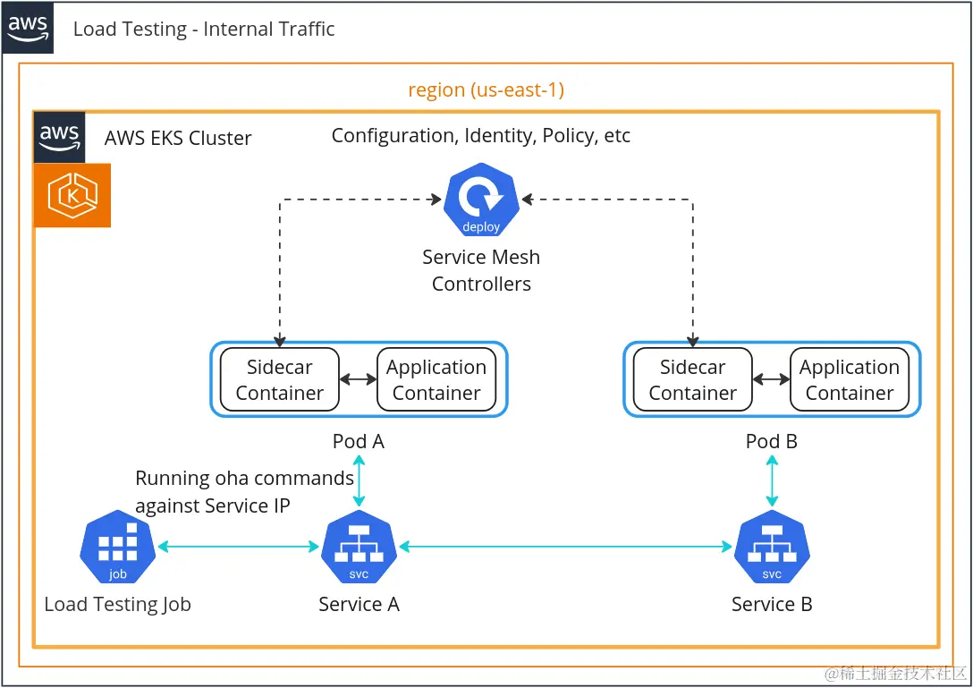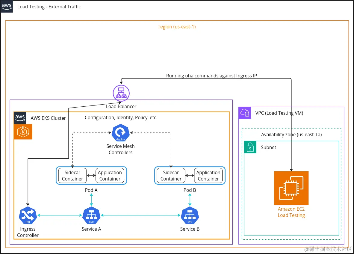 详细信息:在第二轮测试之后,即使禁用服务网格,不同环境中的结果也不同,我们决定从 eu-west-2 迁移到 us-east-1,因为它是最大且最古老的 AWS 区域。