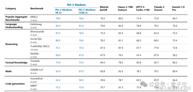 - Phi-3-medium,140 亿参数,支持 128k 和 4k 两种上下文长度。