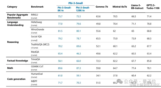 具体来看,先是 Small 在各种语言、推理和数学方面的一系列测试中击败了 GPT-3.5-Turbo,不过代码能力小幅落后,知识储备上的差距就比较明显了。