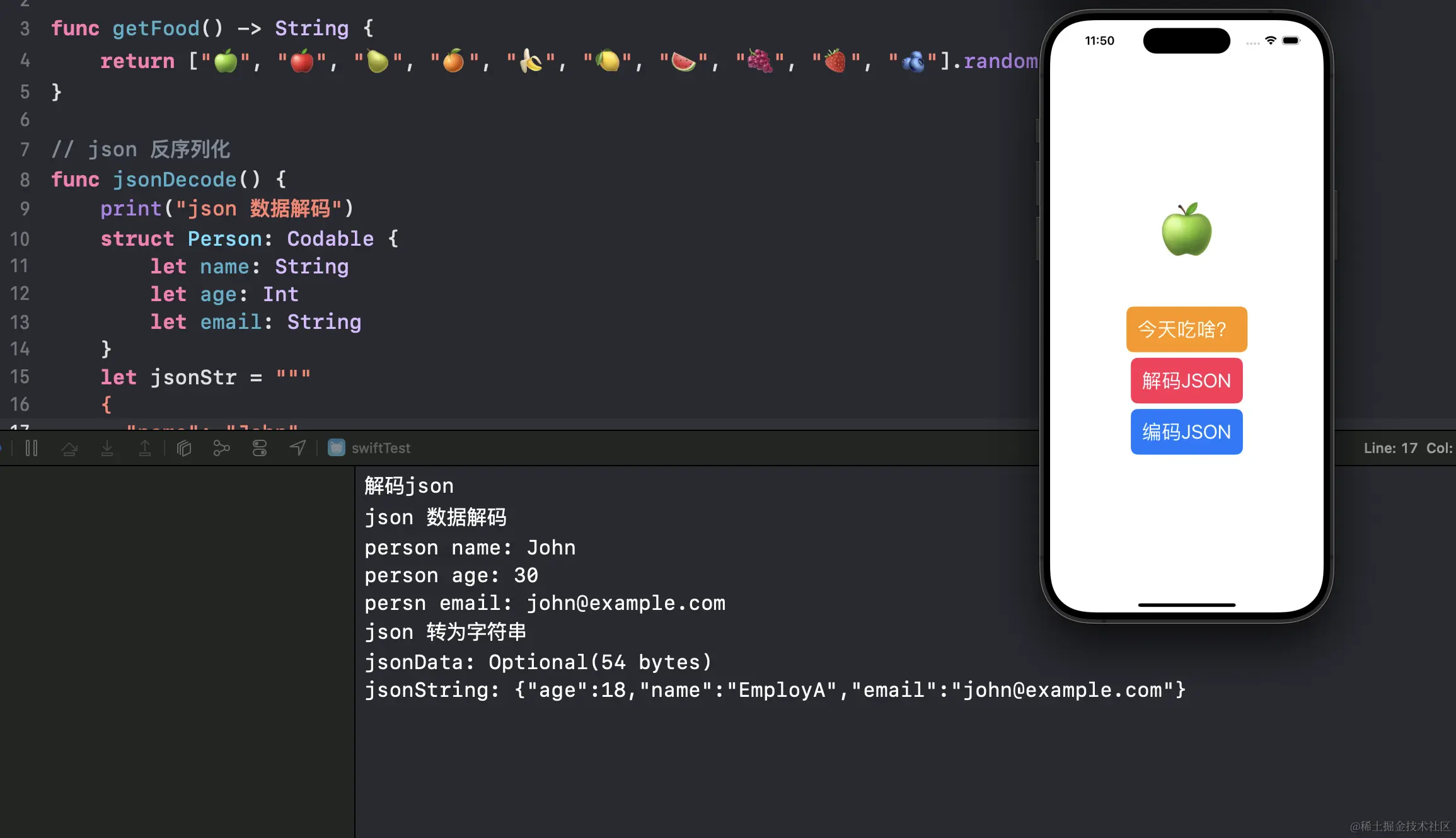 将swift中的自定义结构体数据转化为json字符串,定义一个Person结构体,创建一个这个结构体实例,然后使用JSONDecoder序列化为String字符串: