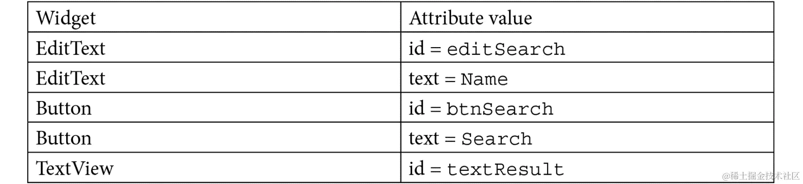 这个屏幕更简单。用户将在EditText小部件中输入姓名,然后点击按钮: