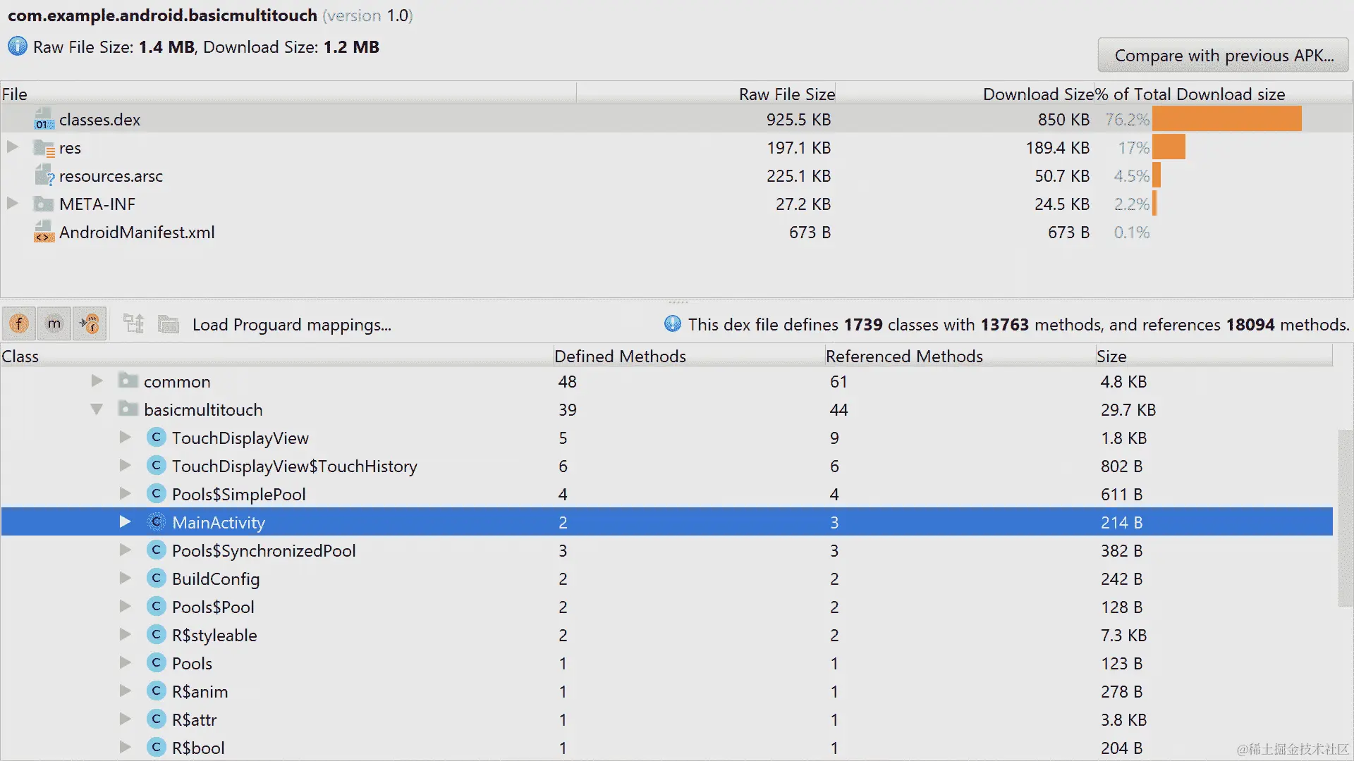 classes.dex文件允许我们探索我们的类和导入库所消耗的内存。