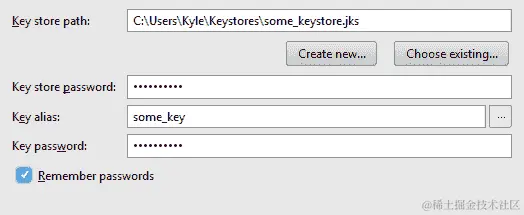 生成已签名的 APK 对话框