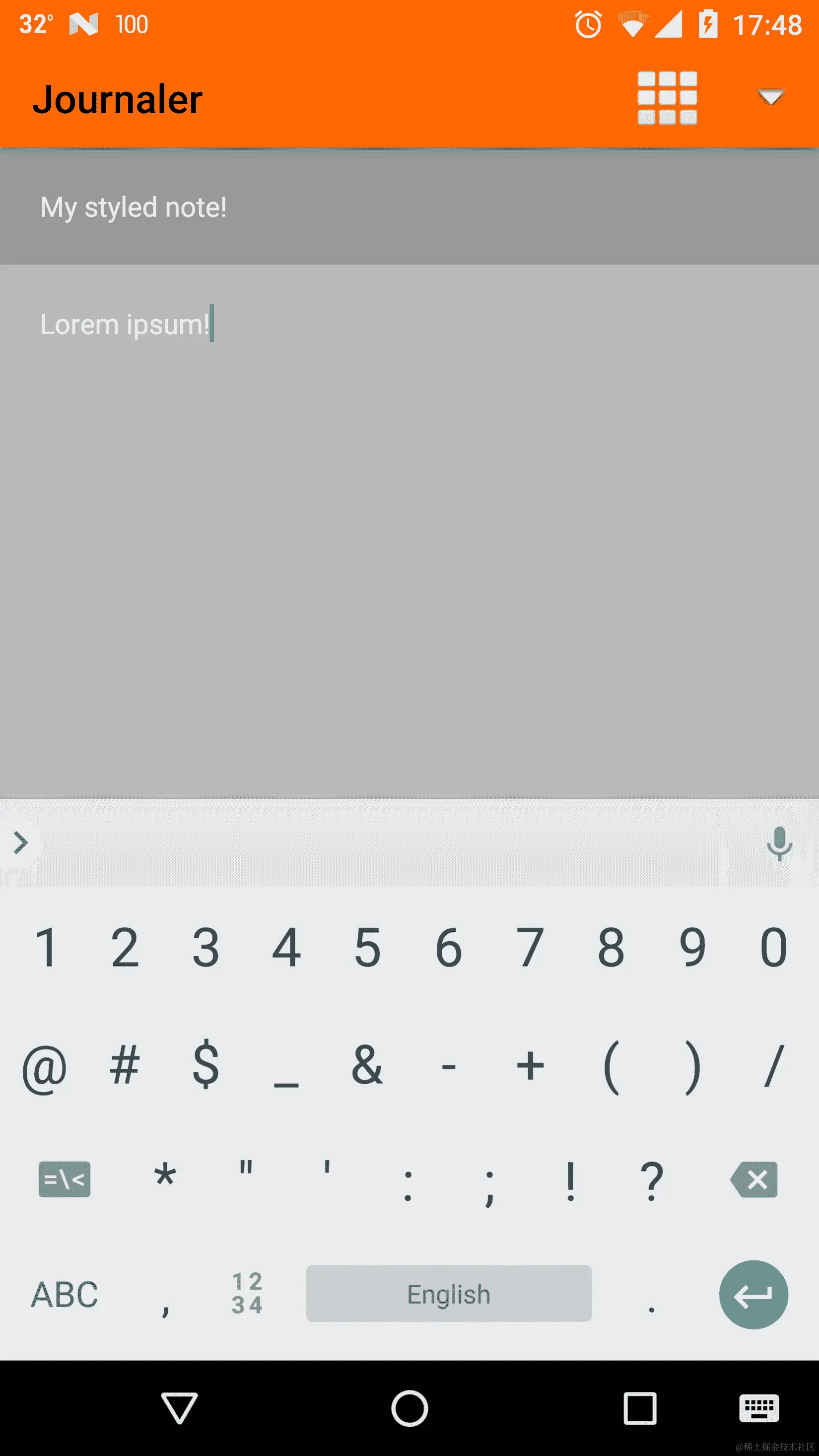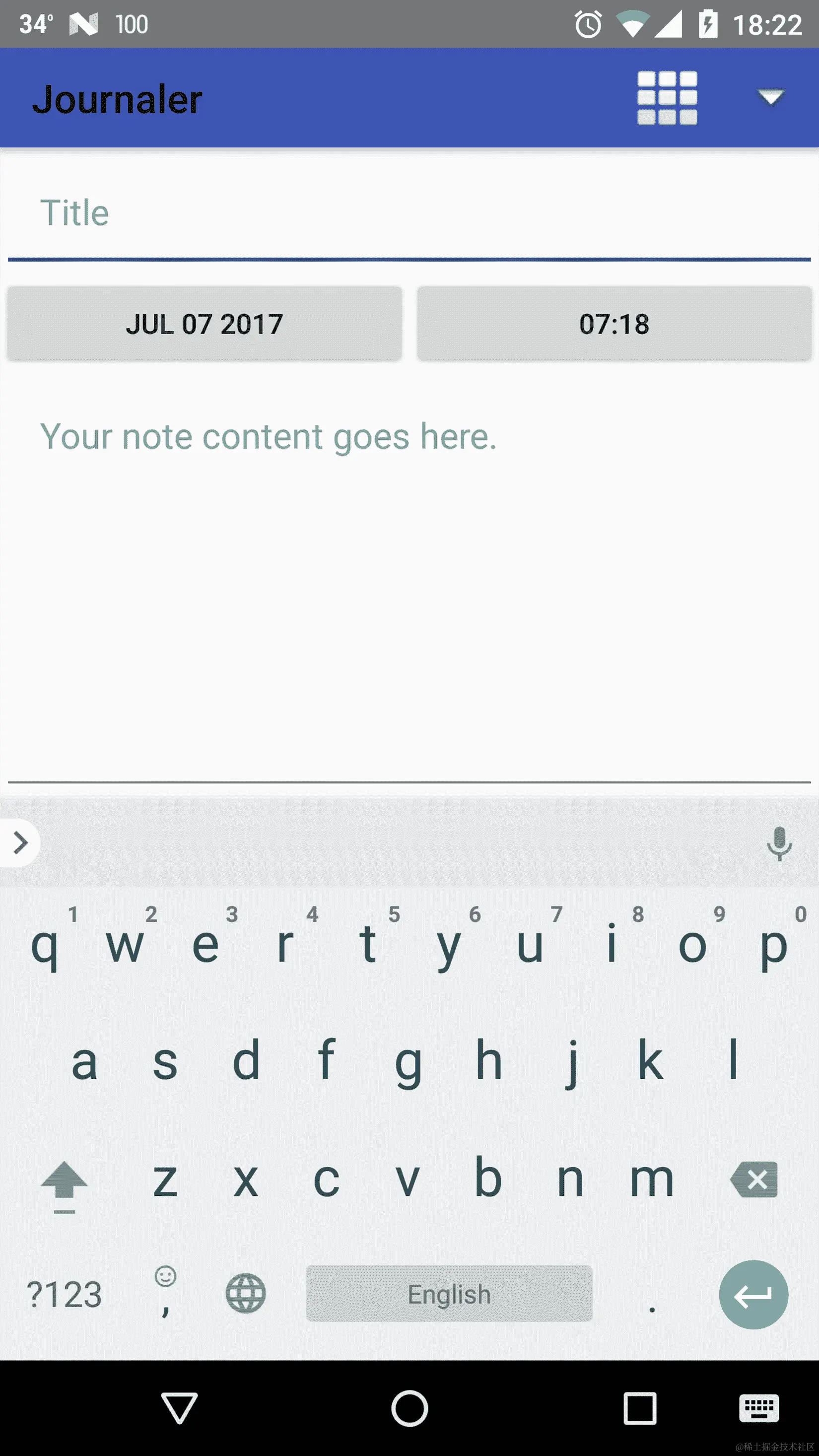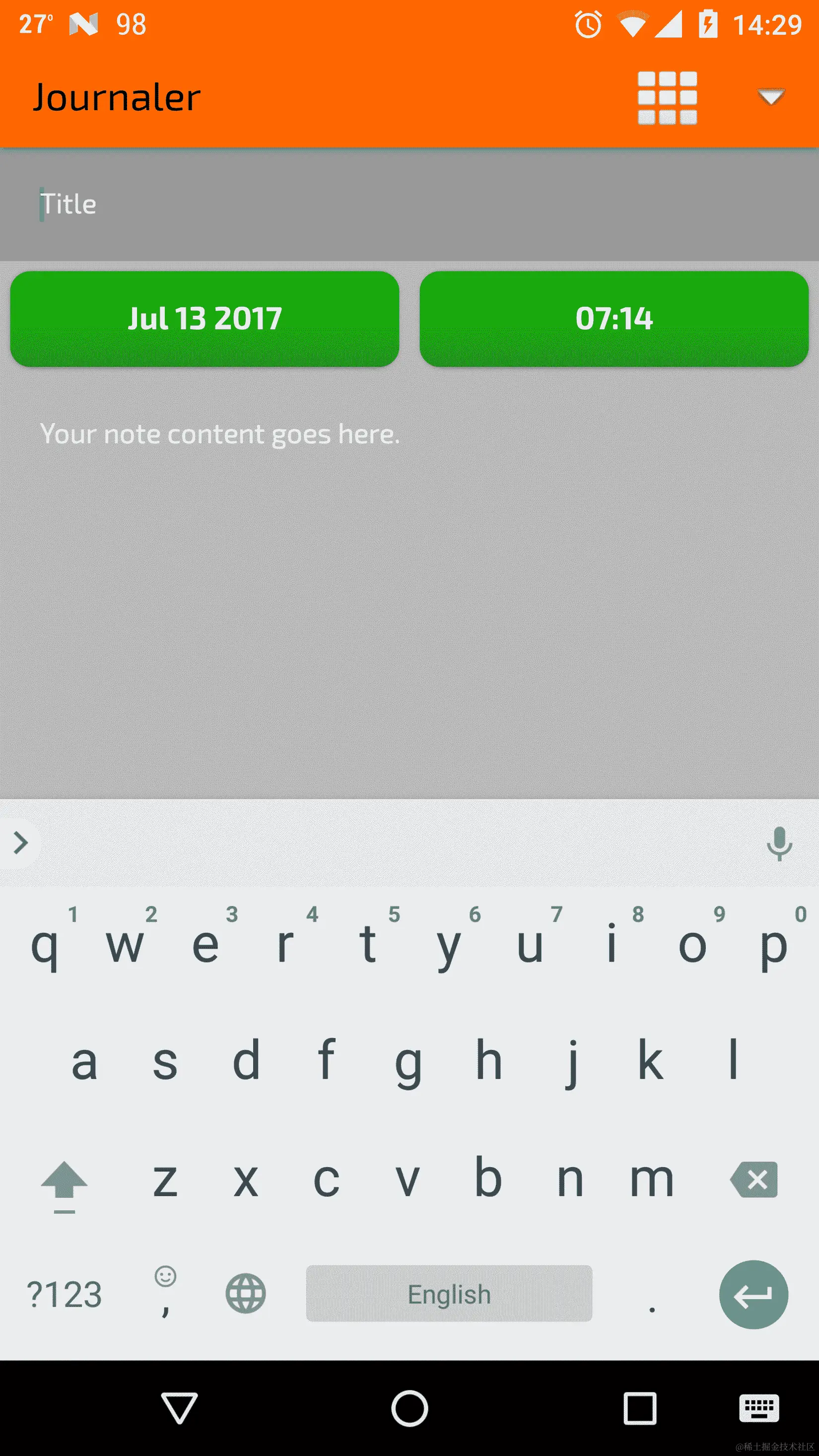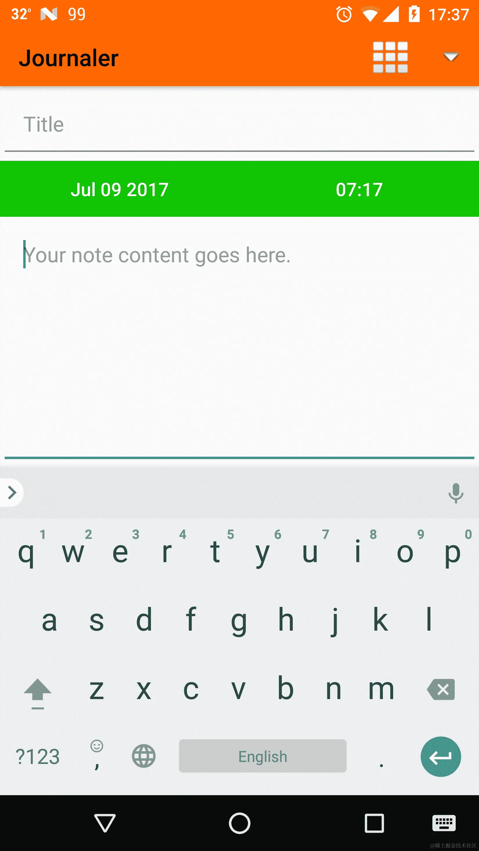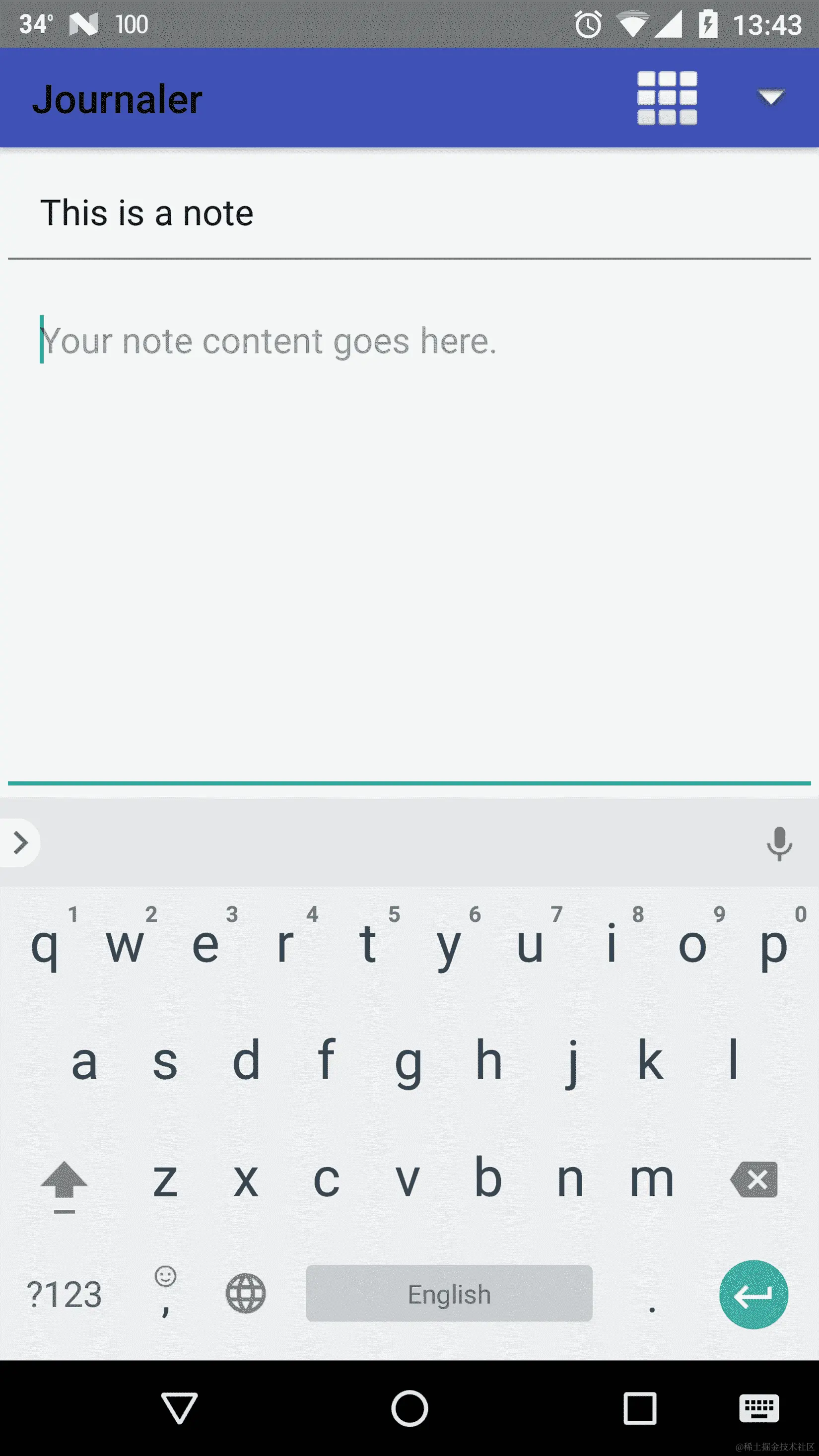 通过调用setSupportActionBar()方法并传递布局中工具栏的 ID,我们分配了一个应用程序栏。如果您运行应用程序,它将看起来像这样: