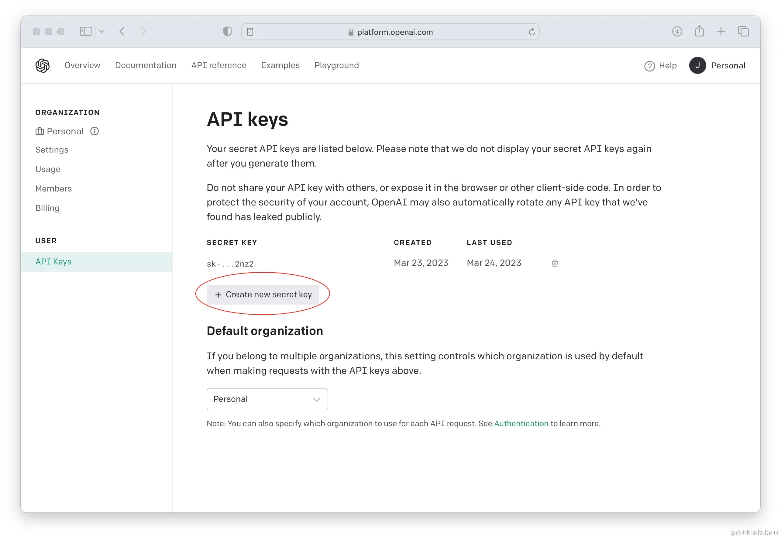 配置open api key 用来访问openai 的api
