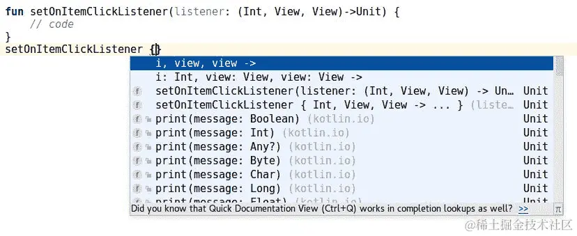 如果我们查看函数类型的方法,那么我们将看到里面只有invoke方法。invoke方法是一个操作符函数,它可以像函数调用一样使用。这就是为什么可以通过在括号内使用invoke调用来实现相同的结果: