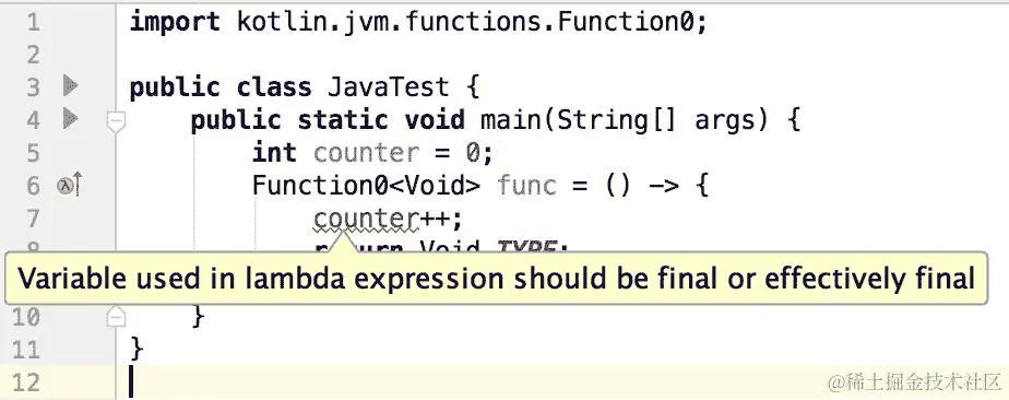 在 Kotlin 中定义匿名函数的最简单方式是使用一个称为 lambda 表达式的特性。它们类似于 Java 8 的 lambda 表达式,但最大的区别是 Kotlin 的 lambda 实际上是闭包,因此允许我们从创建上下文更改变量。这在 Java 8 的 lambda 中是不允许的。我们将在本节后面讨论这种差异。让我们从一些简单的示例开始。Kotlin 中的 lambda 表达式具有以下表示法: