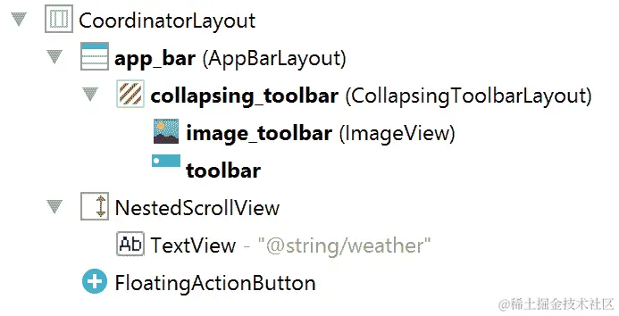 这个节点的目的很简单,app_bar_main.xml文件包含了我们在本书前面介绍过的协调布局和其他视图。使用<include>标签并不是必需的,但如果我们想在另一个活动中重用该代码,它是非常有用的,当然,它会产生更清晰的代码。