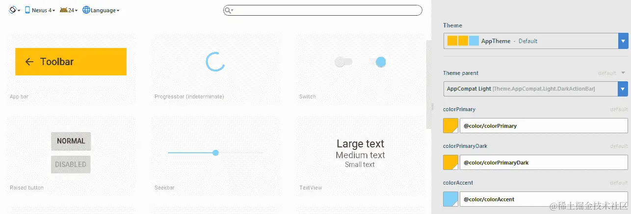 UI 开发:Studio 和其他 IDE 之间最重要的区别是其布局编辑器,它比任何竞争对手都要优秀,提供文本、设计和蓝图视图,最重要的是,为每个活动或片段提供约束布局工具,易于使用的主题和样式编辑器,以及拖放设计功能。布局编辑器还提供了许多其他地方无法获得的工具,例如全面的预览功能,可以在多种设备上查看布局,以及易于使用的主题和翻译编辑器。