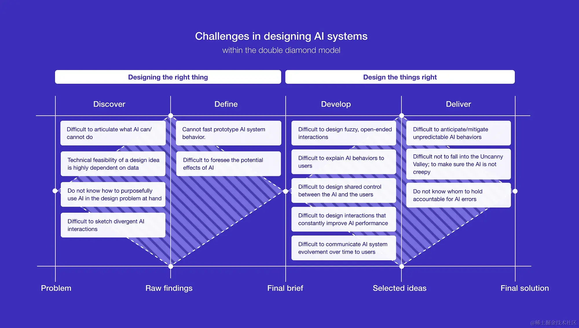 卡内基梅隆大学的杨倩和她的团队研究了人机交互研究人员和专业人士在使用人工智能时面临的挑战。他们在广泛认可的双金刚石设计过程模型中构建了这些挑战和相关研究论文。