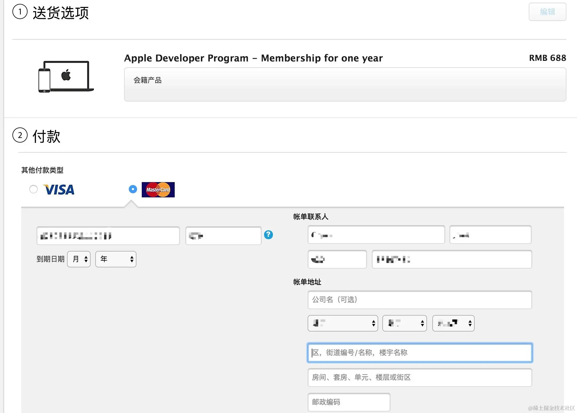 11.付款:需要有一张VISA卡或者MasterCard信用卡,因为苹果这里只支持这两种类型的卡付款
