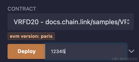 以该合约为例,选择部署VRFD20合约。为了让合约知道使用哪个VRF订阅,部署时要传入VRF订阅的ID,如下图: