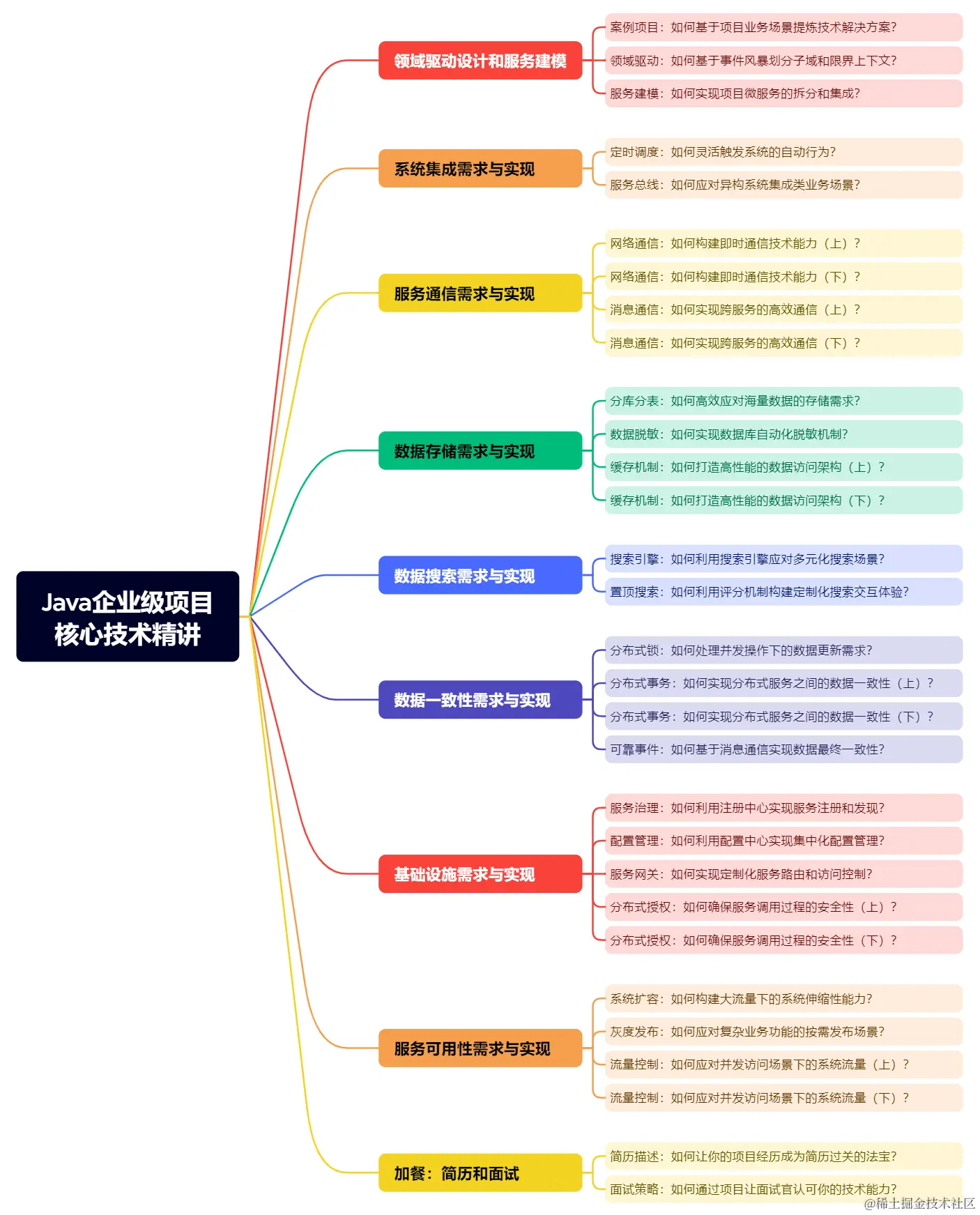 另一方面,这也是一本 场景驱动 类的技术小册,主要基于如下所示的思维导图来组织相关内容: