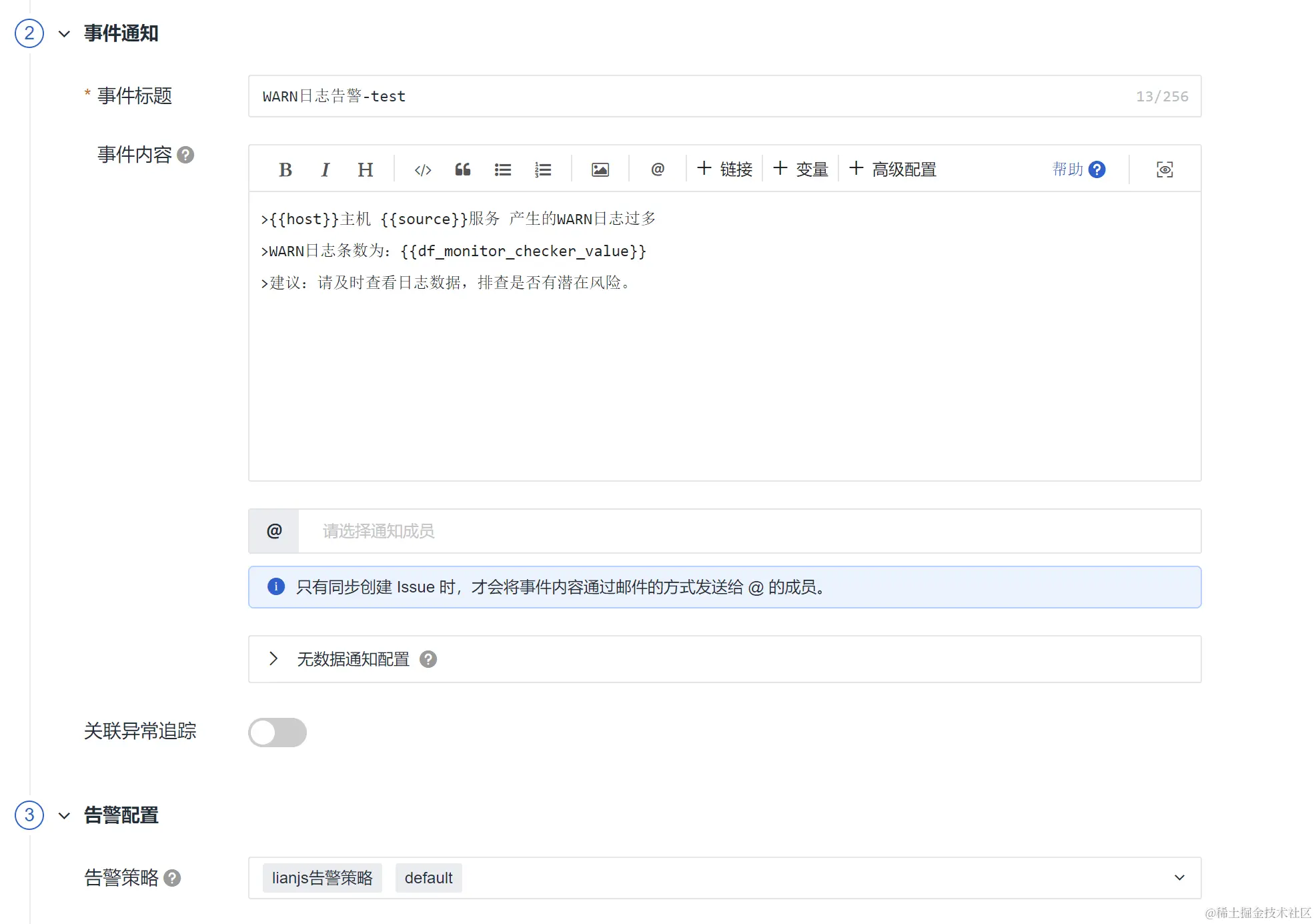第三步:编辑事件通知内容和告警策略,点击创建即可。