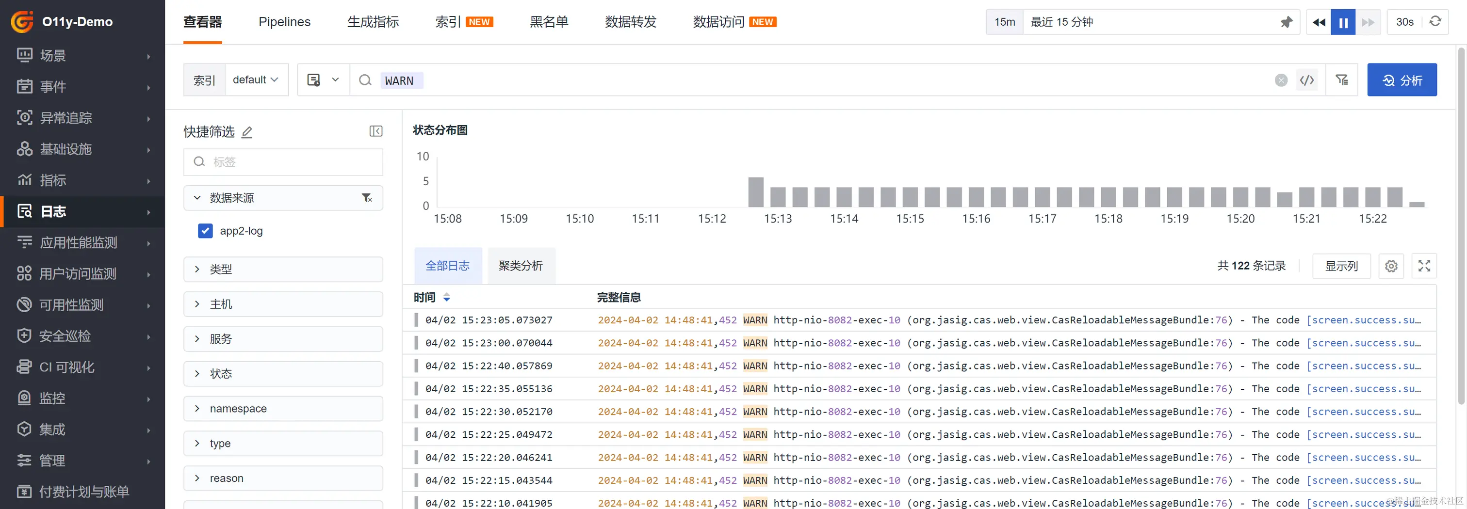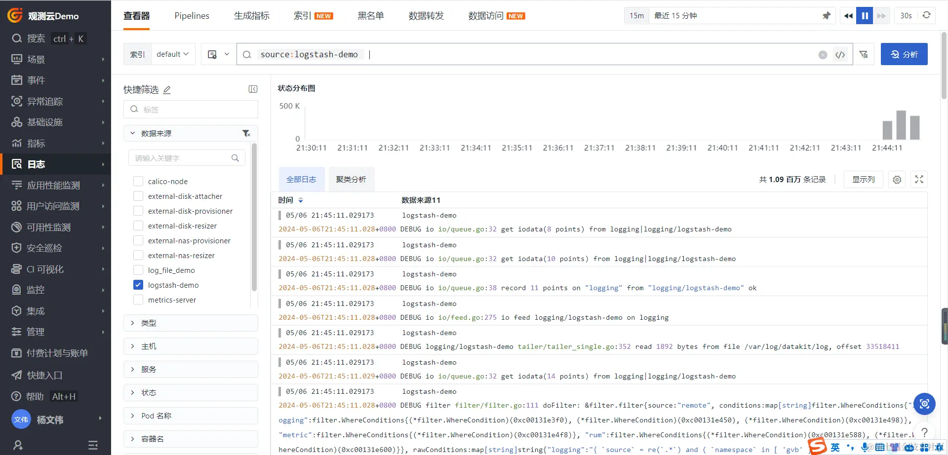 观测云支持通过多种操作对日志数据进行查询和分析。