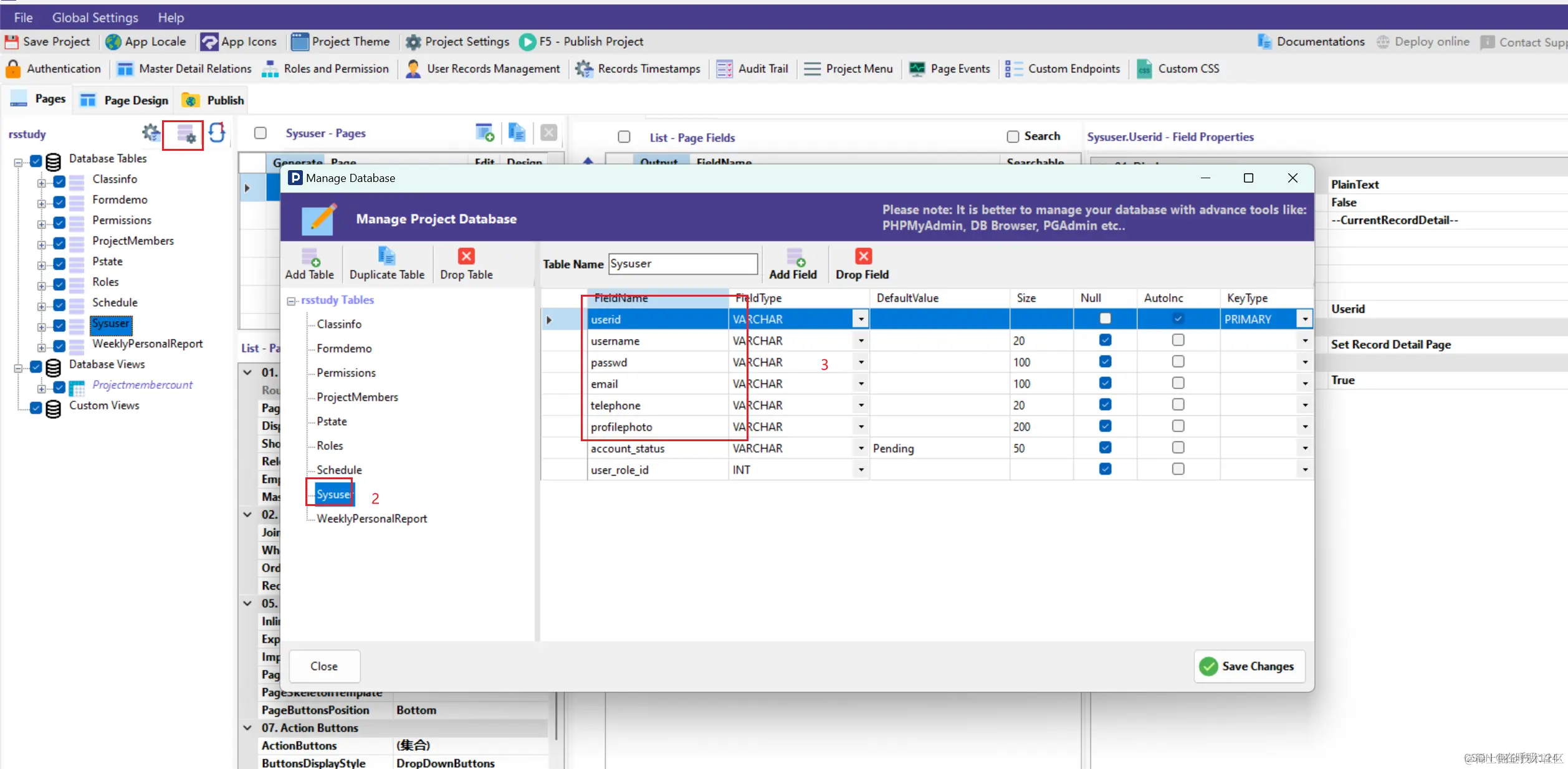 按步骤点击确保有用户表存在。