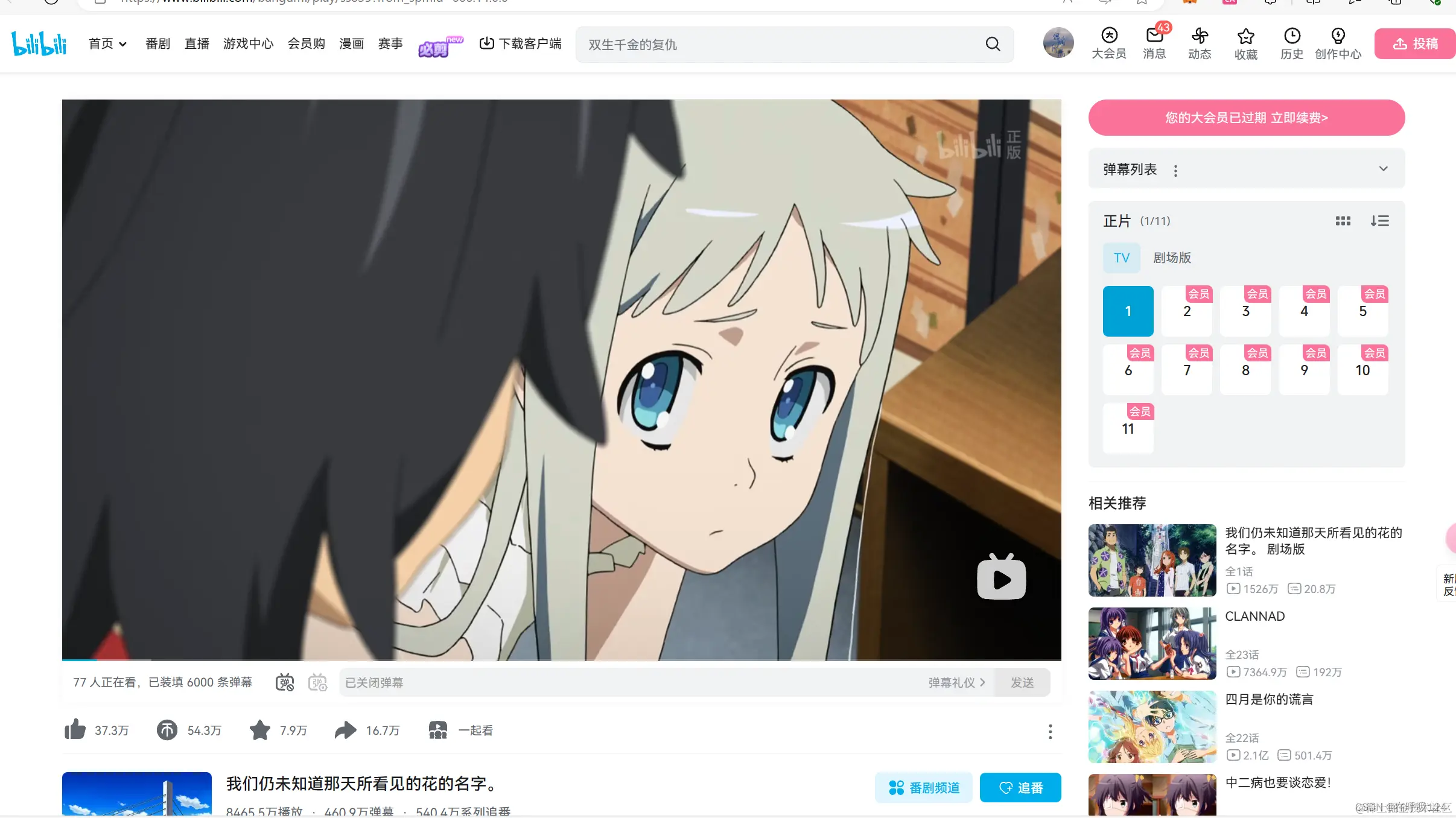 我们去b站随便找一个动漫试试看,截图保存