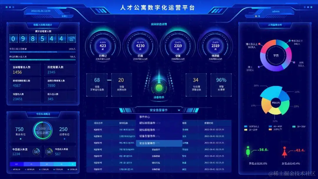 目前,全国现存的人才公寓明显存在着人员流动管理难、物业服务维护难、基础配套设施弱、人才居住体验差等问题,群租、转租、空租、欠租等违法违规事件难以杜绝和排查,传统运维模式难以满足人才公寓现有租赁住房的管理需求。