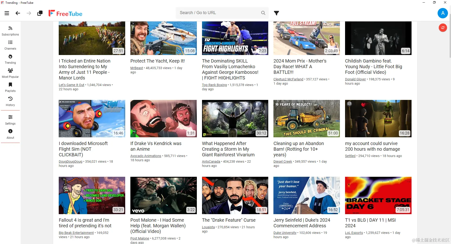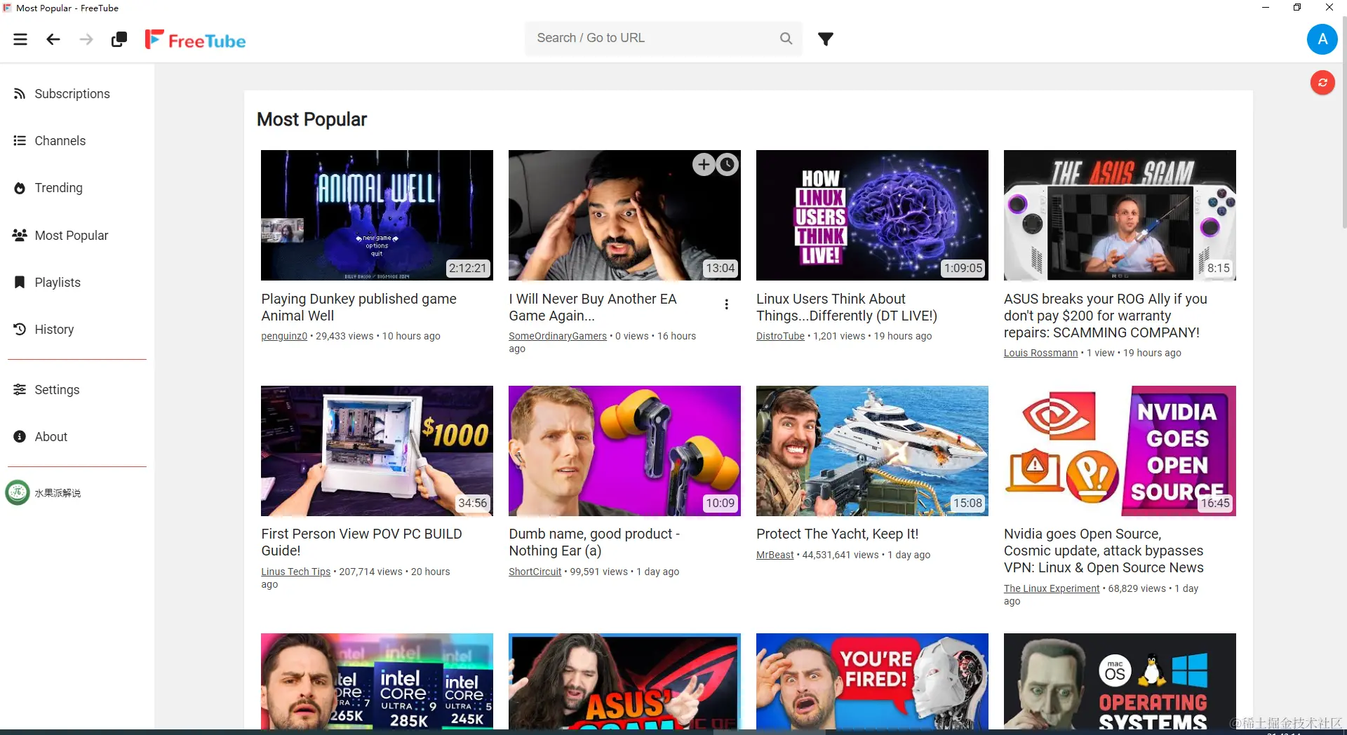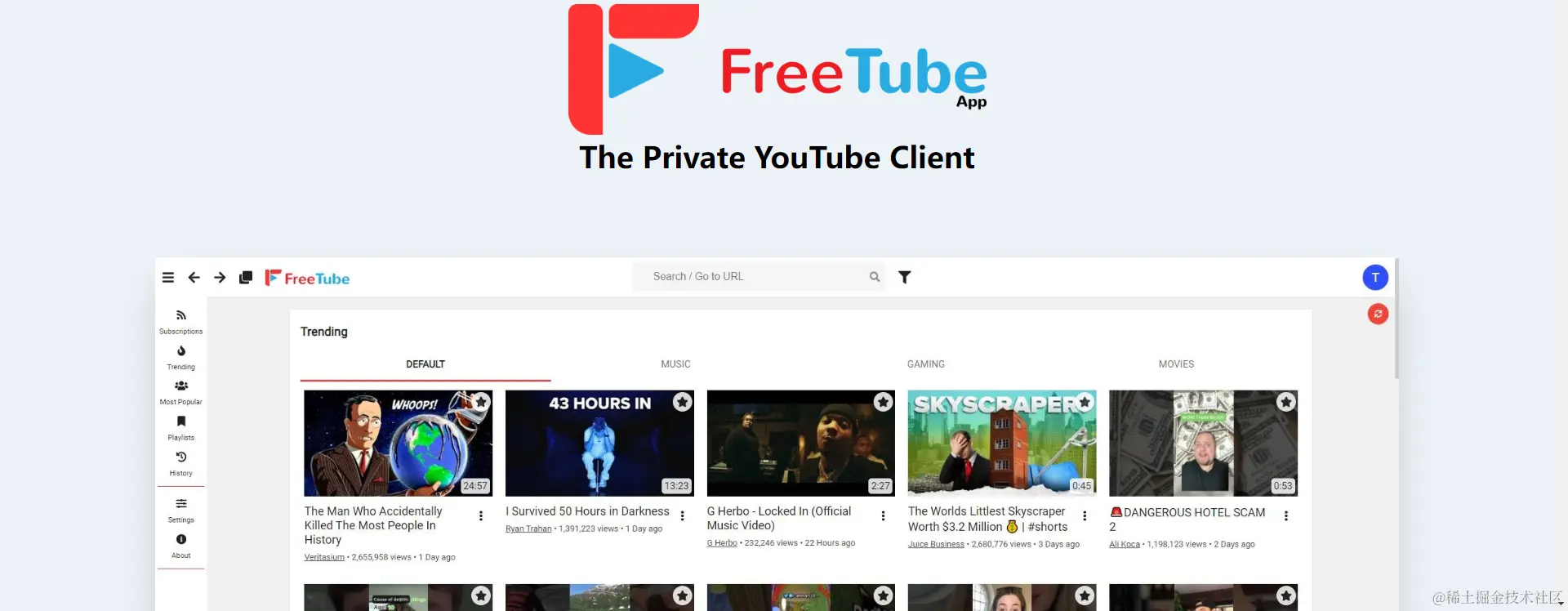 FreeTube —— 一款开源桌面 YouTube 播放器,基于 Electron 实现,同时支 Windows(10 及更高版本)、Mac(macOS 10.15 及更高版本)和 Linux。