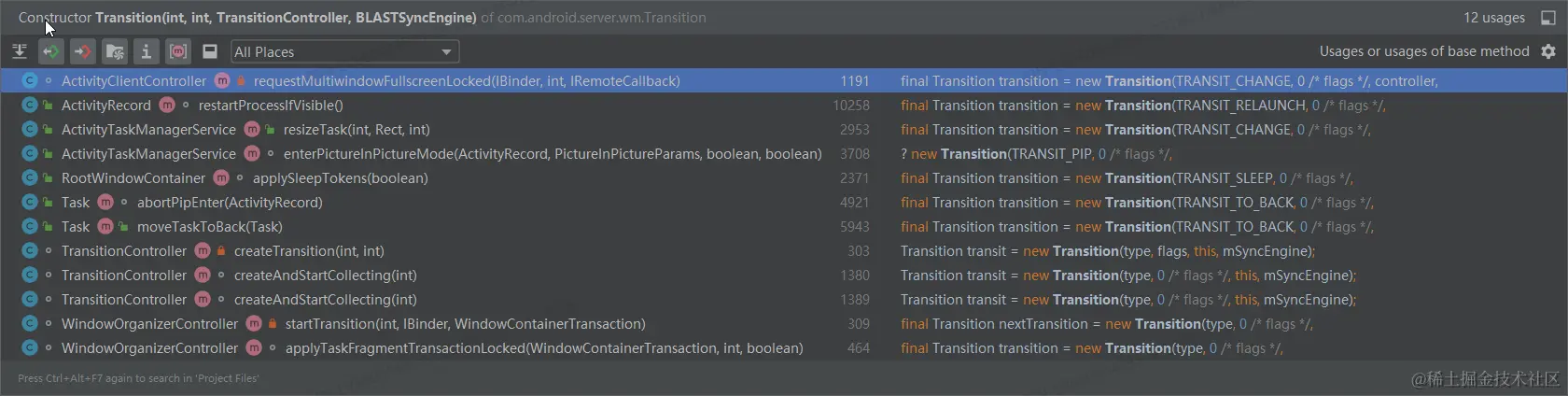 能看到创建Transition的地方还是挺多的: