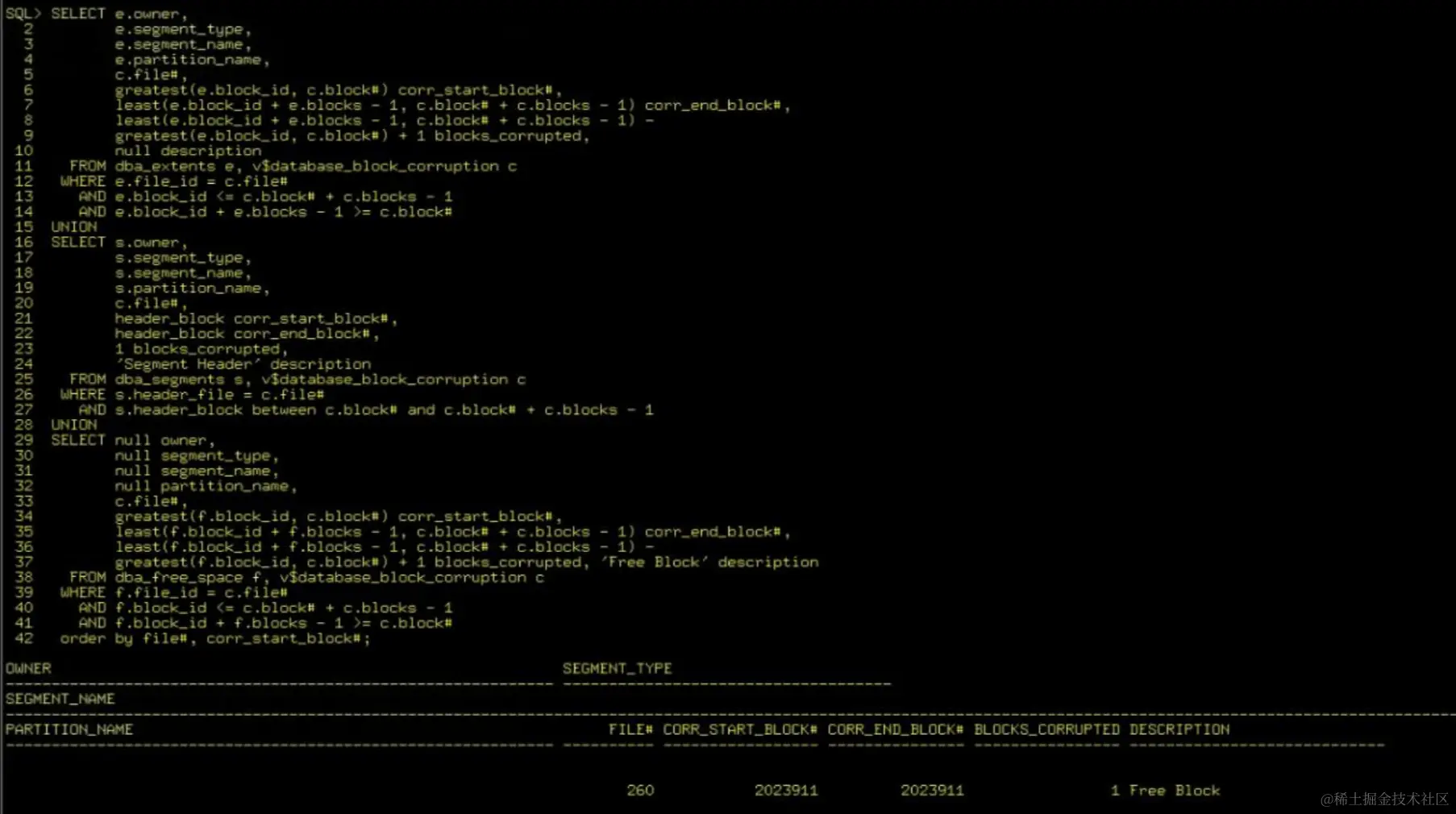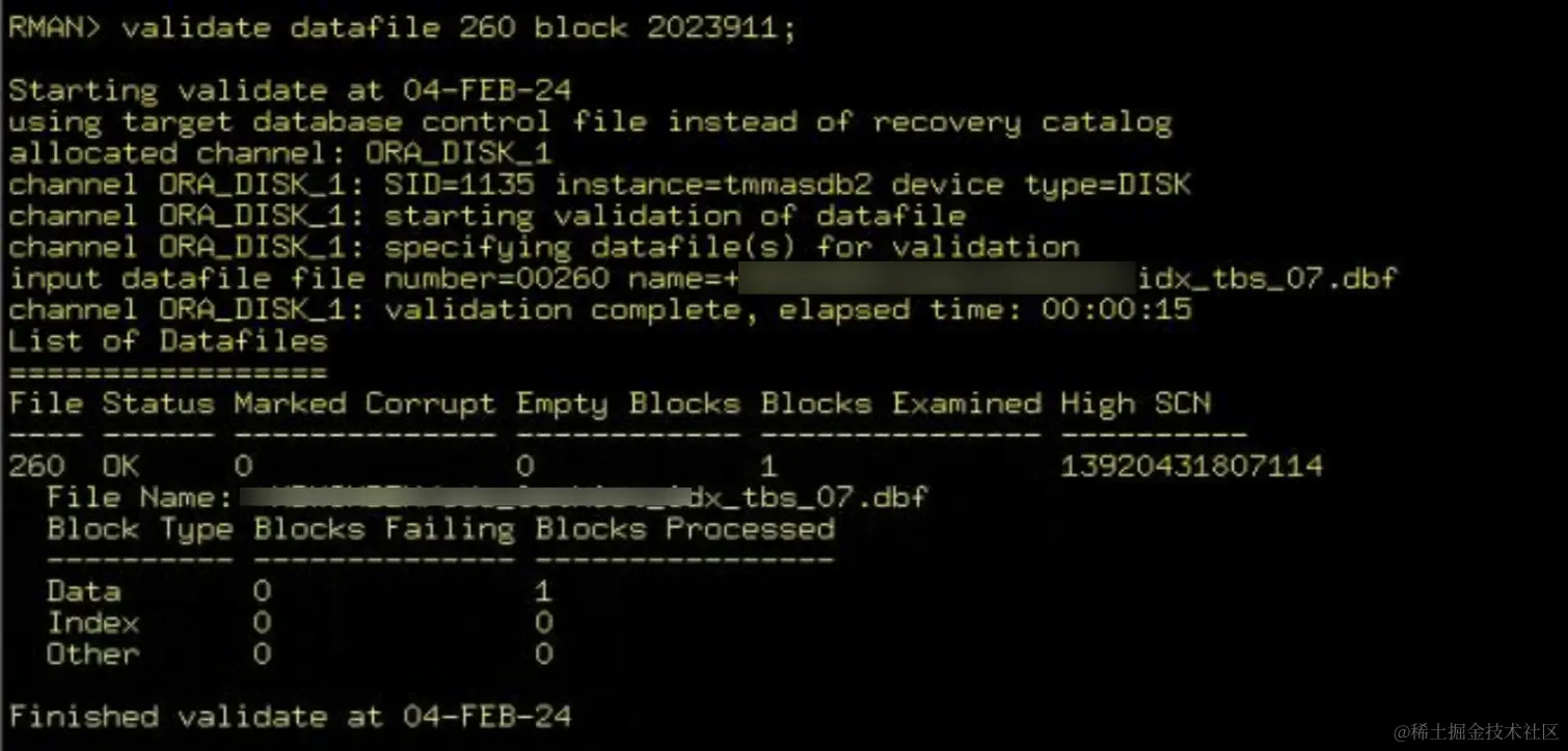 ORA-19566报错来看,基本定位为坏快造成的,确认当前使用的数据库为Oracle 11.2.0.4.0 RAC,通过以下查询确认坏快信息