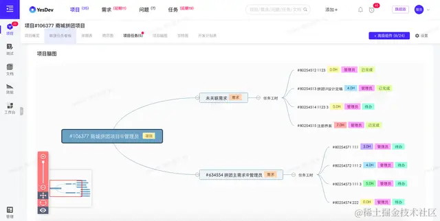 首先,通过项目脑图可以让大脑直观、感性、具象看到整体项目的拆解结构。然后继续通过开发计划表的Excel表格,按 项目-需求-任务 这样的层级进行理性的拆解和划分。
