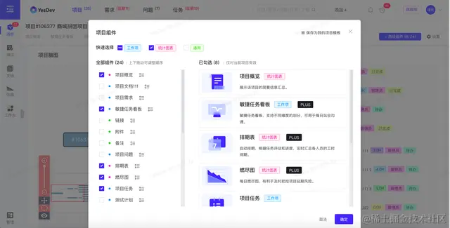 如果需要查看和使用更多的项目任务统计,可以直接调取所需要的项目组件。