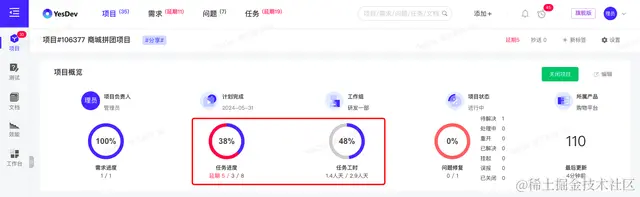 在项目里程碑中,也会自动抓取对应的任务里程碑,进行统计和显示。