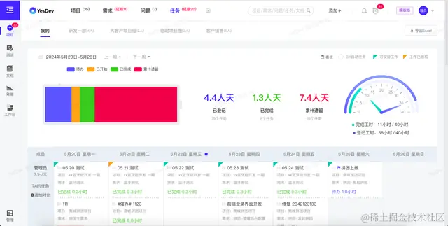 作为协作流之一,一方面,任务可以用于个人进行每日的工时登记;在另一方面,任务还可以用于项目的工时进度统计、项目排期、项目燃尽图、项目甘特图等统计。