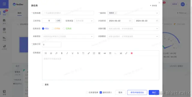 除此之外,为了突显任务里程碑的重要性,YesDev会同步在任务弹窗详情、个人任务工时登记界面、我的遗留任务、项目甘特图等,同步展示此任务里程碑标记,时刻提醒团队成员重点关注此任务里程碑。