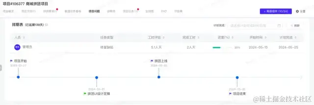 根据项目任务和任务里程碑,自动汇总当前项目人员的排期表和项目里程碑。