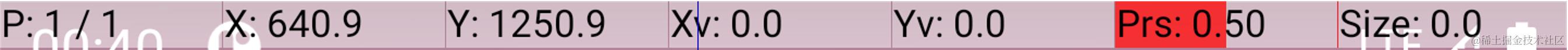 Prs 表示 Press,代表一个手指或者其他设备作用在屏幕上的压力值。取值范围为0~1。