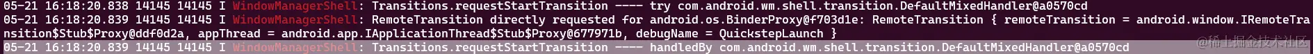 可以认为这种方式是由WMShell发起了Transition,而我们之前分析的流程是WMCore发起了Transition。并且这里回调IWindowOrganizerController的是startNewTransition,而我们之前分析的流程回调的是startTransition,区别即在于传入的Transition的token是否为null: