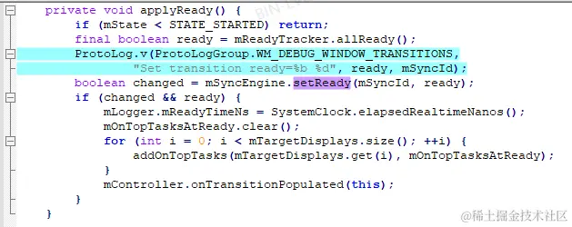 3)、回到WMCore侧,得知在WMShell侧创建了和当前Transition一一对应的ActiveTransition后,这个Transition的状态就从STATE_COLLECTING切换为STATE_STARTED,并且相应的SyncGroup的成员变量mReady也被设置为true。