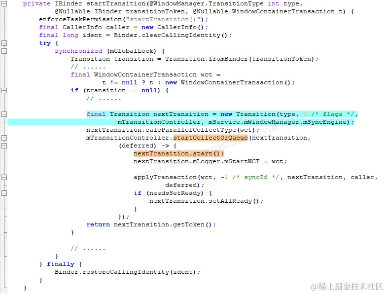 从WMCore到WMShell再到WMCore,我们始终传递着IBinder类型的Transition对应的token,因此这里的Transition是不为null的。
