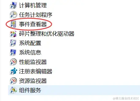 (1)通过【控制面板】->【管理工具】->【事件查看器】 来打开Windows日志;