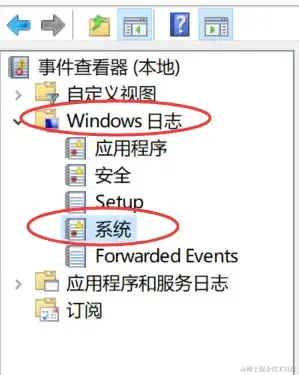 (2)在事件查看器窗口中,展开 【Windows日志】文件夹,然后选择 【系统】日志;