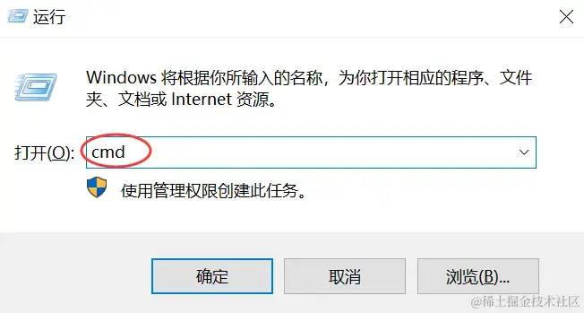 (1)按下【Win+R】键,输入 【cmd】后按回车,打开【命令提示符】窗口;