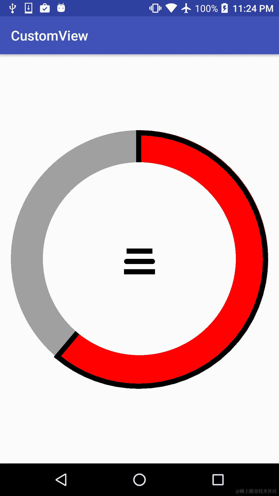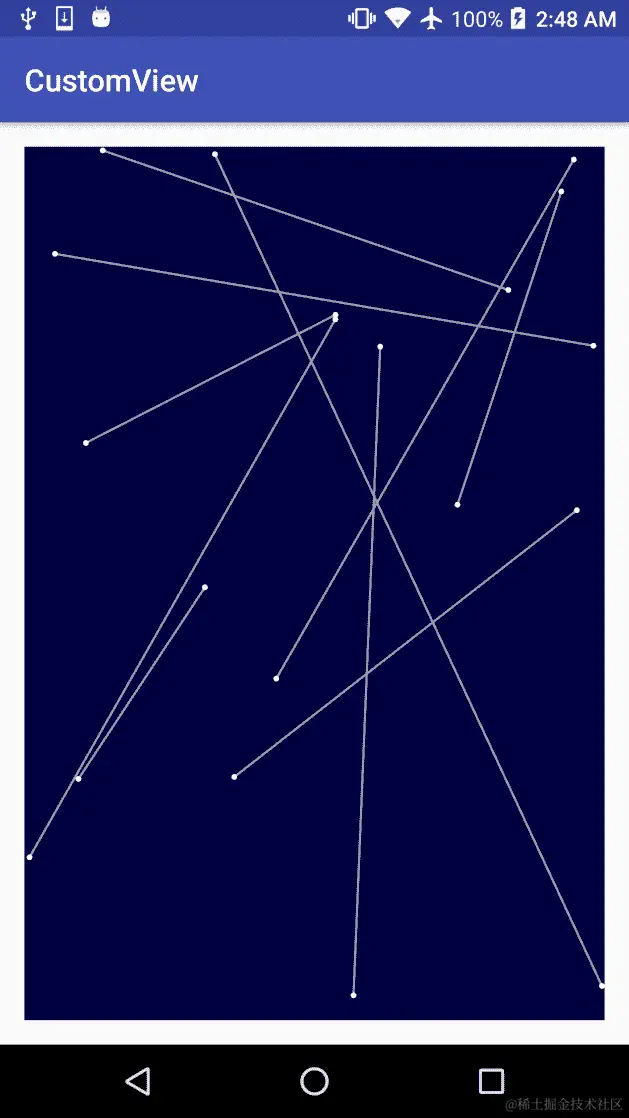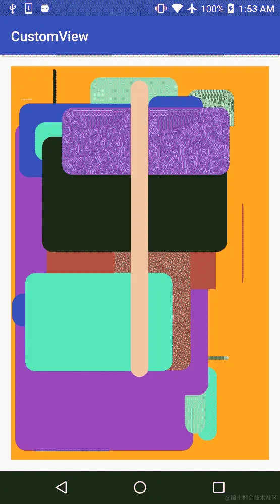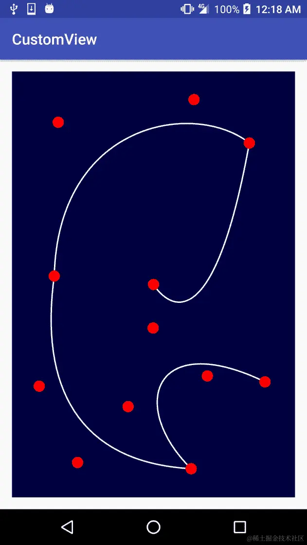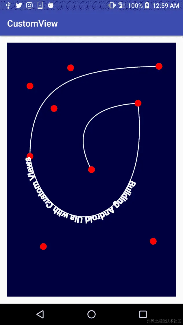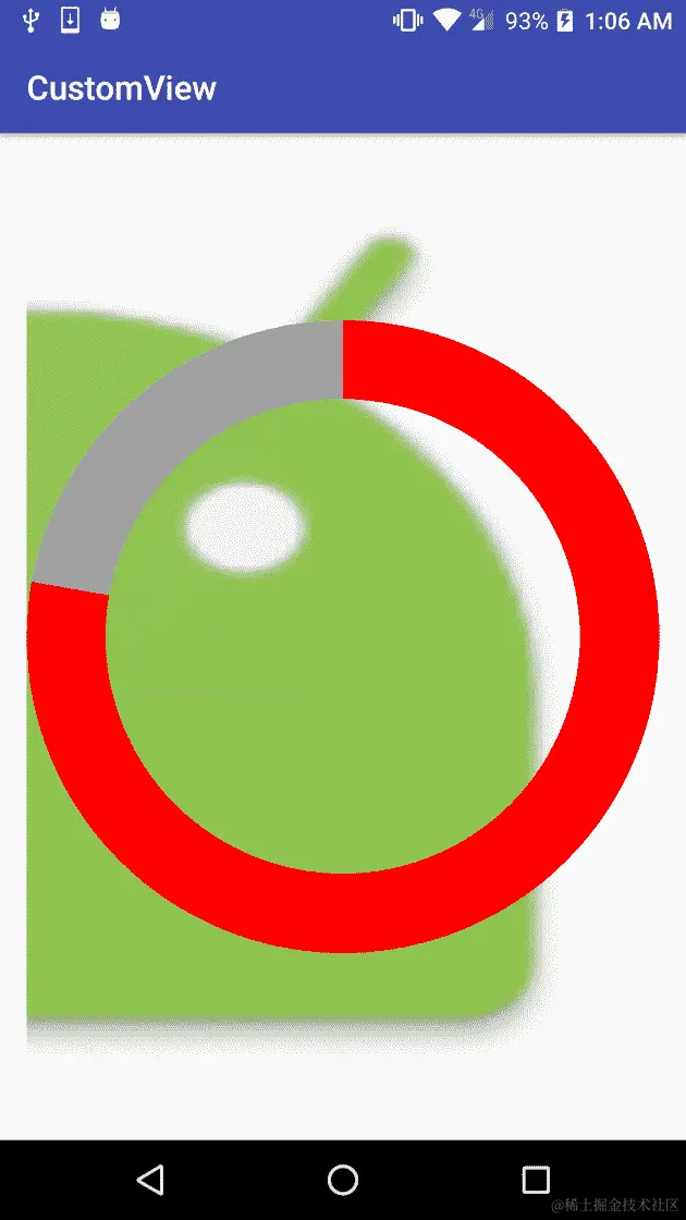 同时,在这个例子中,我们可以看到我们在AnimatorUpdateListener()中调用了invalidate(),因此我们也在告诉 UI 重新绘制视图。