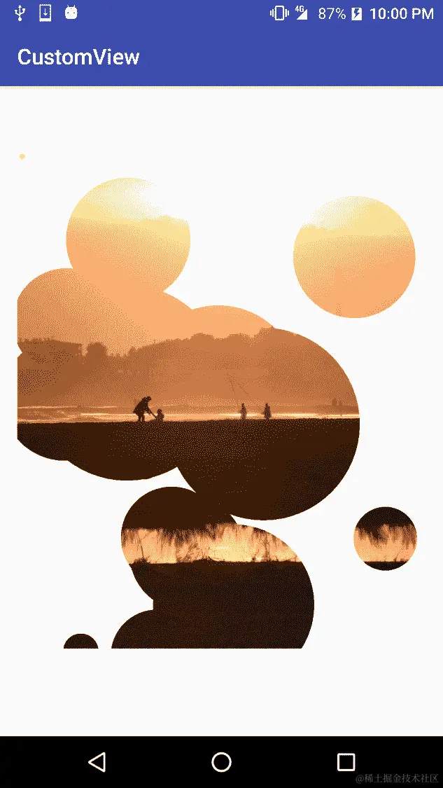 在 onDraw() 方法中,我们将目标 Rect 的右侧和底部坐标设置为自定义视图的宽度和高度,然后我们绘制图像: