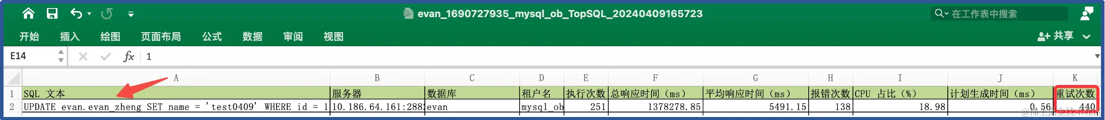 确认此 trace_id 关联的 SQL 存在重试行为。