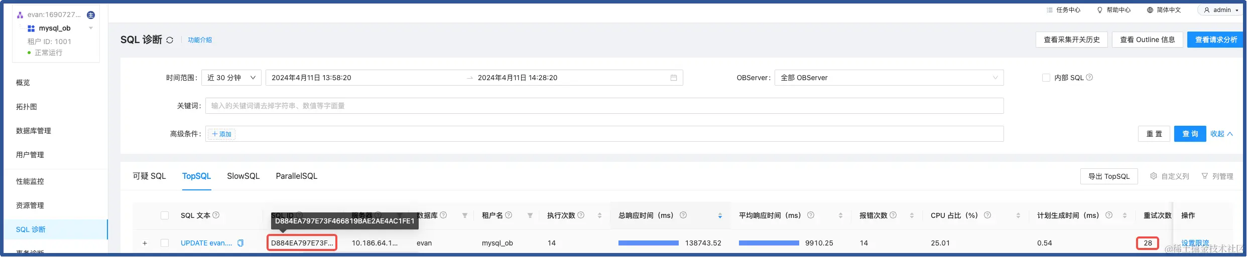 1. OCP 云平台,复制 SQL ID