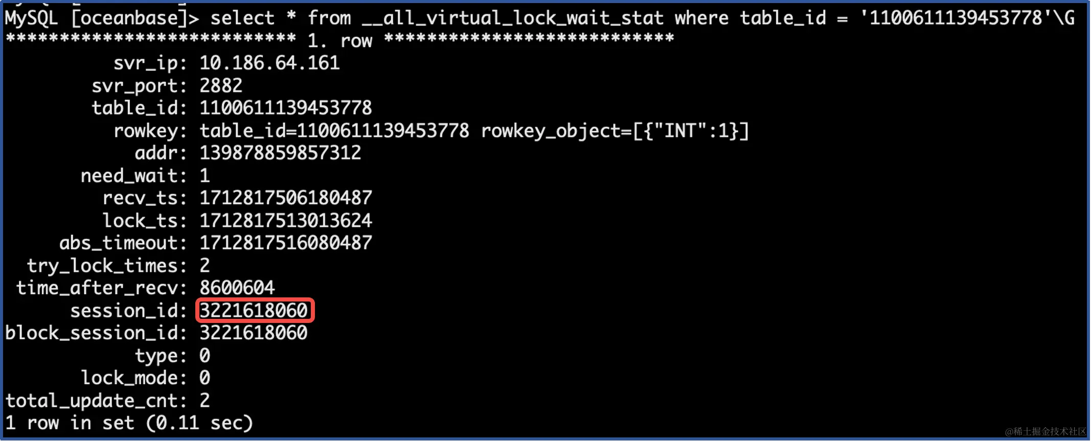 select * from __all_virtual_lock_wait_stat where table_id = '1100611139453778'\G