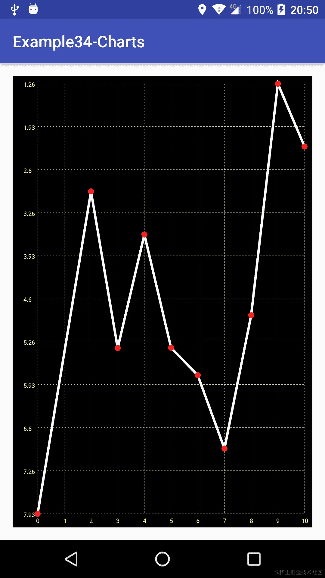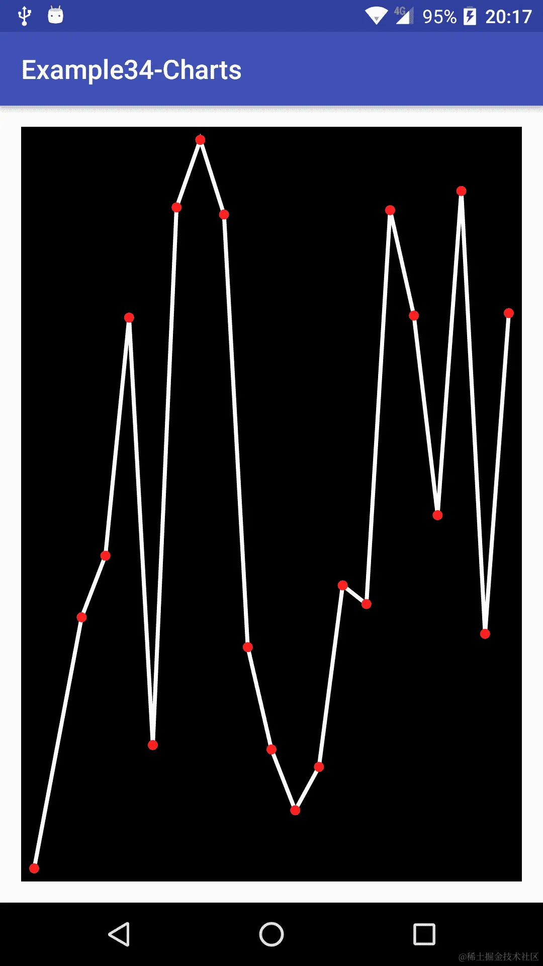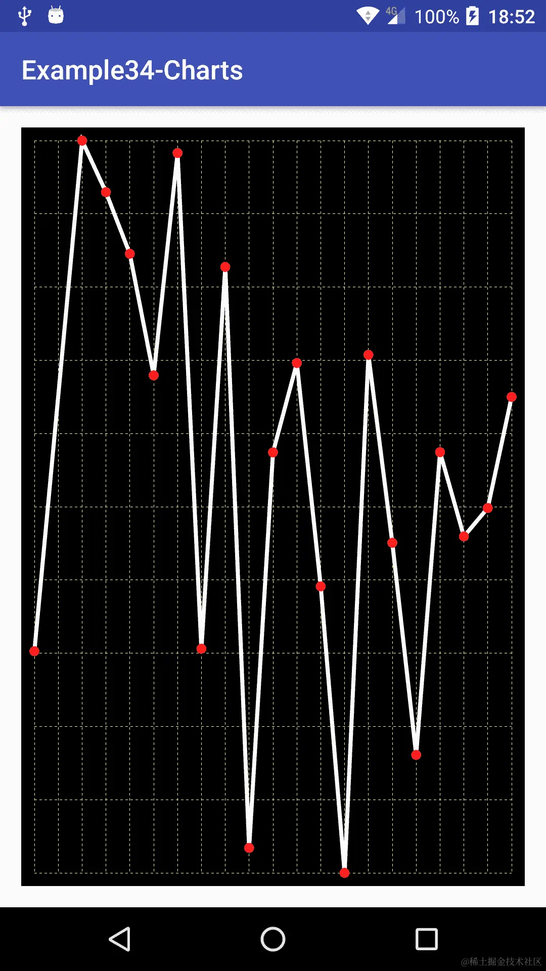 如果我们运行示例,可以看到可以向图中添加新点,它会自动调整。要完全更改或更新数据,必须调用setDataPoints()方法。
